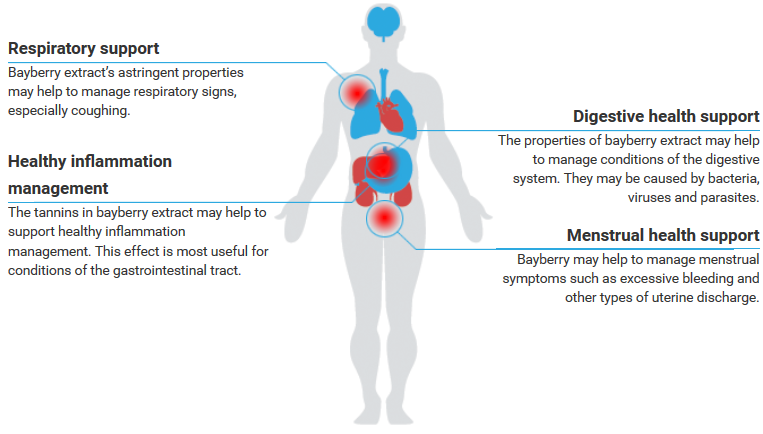 The health benefits of bayberry are primarily due to its astringent effects. These uses include the support of the digestive system and respiratory system as well as healthy inflammation management and menstrual health support.