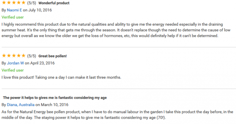 That’s the real reason why they are happy to offer a full 365 days money back guarantee on all their products, including their bee pollen supplement.